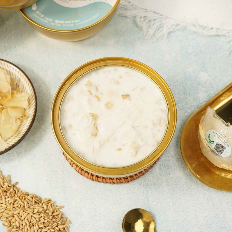วัตถุดิบ: น้ำดื่ม กะทิ ข้าวโอ๊ต ดอกลิลลี่ รังนก นกนางแอ่นหิมะ น้ำตาลกรวด