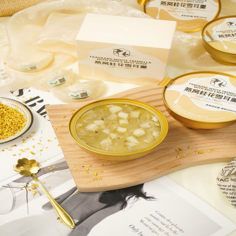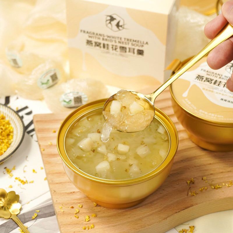 Fragrans White Tremella กับซุปรังนกผสมผสานส่วนผสมคุณภาพสูงหลากหลายชนิด ไม่เพียงแต่เป็นอาหารอันโอชะเท่านั้น แต่ยังเป็นผลิตภัณฑ์ที่มีคุณค่าทางโภชนาการและมีคุณค่าทางโภชนาการซึ่งเป็นส่วนผสมที่ลงตัวระหว่างความอร่อยและสุขภาพ