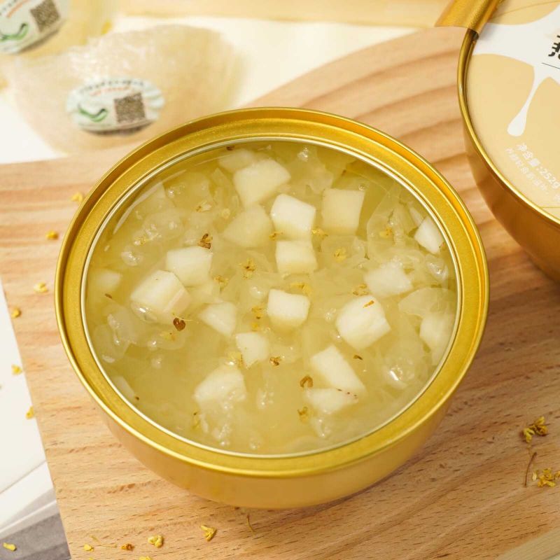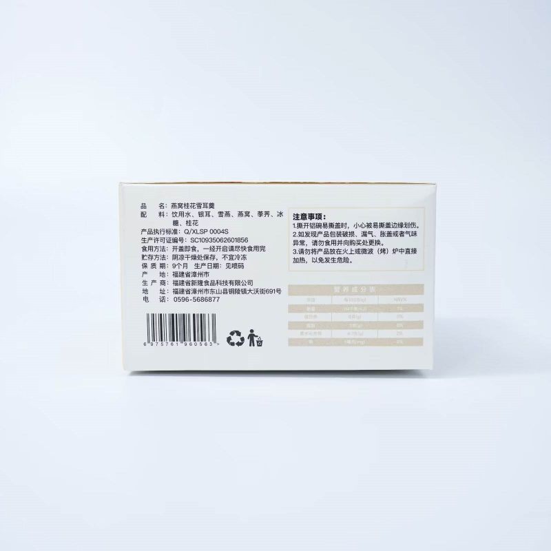 วัตถุดิบ: น้ำดื่ม เห็ดหูหนูขาว นกนางแอ่นหิมะ รังนก น้ำตาลทราย หอมหมื่นลี้